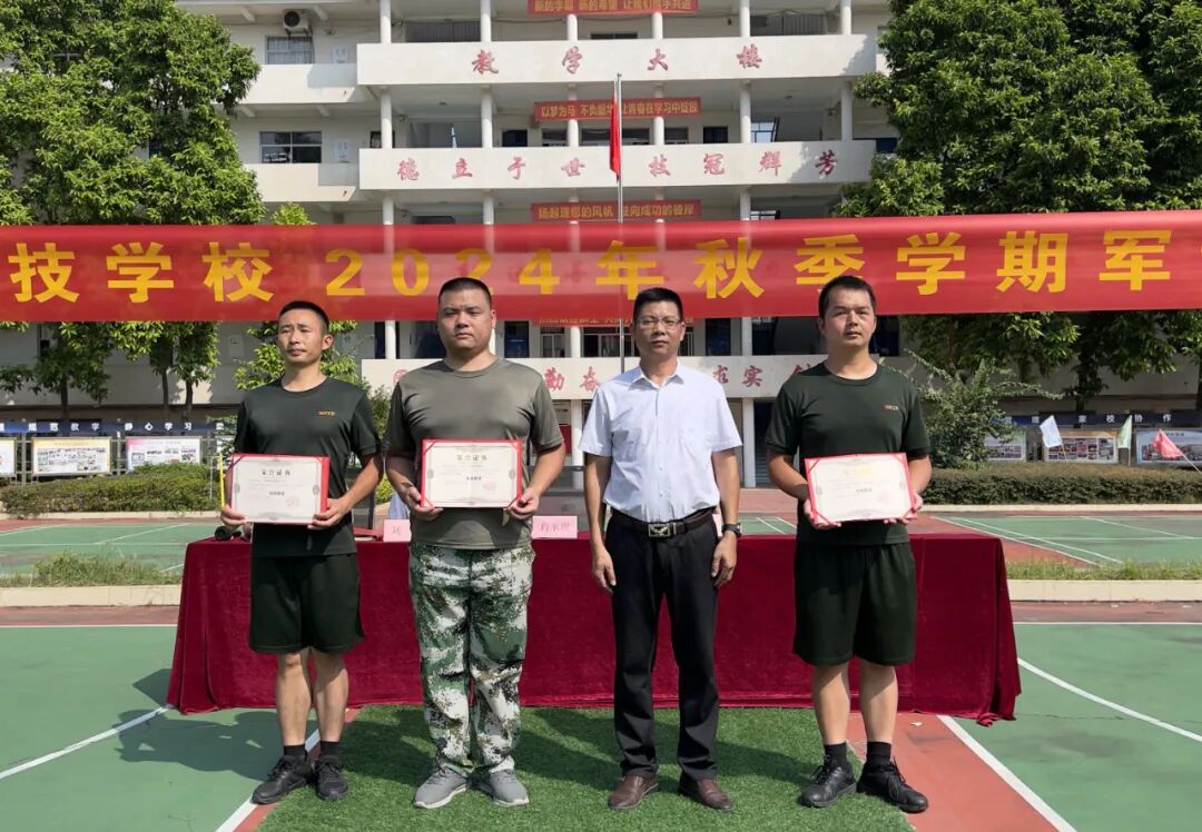 赣州市科技学校高考部2024年秋季学期新生军训总结大会发表时间:2024-09-14 15:19 日晒汗流肤色变,千锤百炼铸铁骨。 千淘万漉虽辛苦,吹尽狂沙始到金。 ![]() ![]() 9月11日,赣州市科技学校高考部举行了庄严的军训闭幕仪式。参加军训总结大会的领导有执行校长肖承理、分管政教副校长刘林、分管教务副校长魏丽英、教官郭兆平。本次大会由政教处黄为舜老师主持。 ![]() 升旗仪式,奏国歌,升国旗,行注目礼,鲜艳的五星红旗在风中飘扬。 ![]() ![]() 列队表演 各连队会操表演。进行分列式表演,经过七天的严格训练,同学们英姿飒爽、队列整齐、口号铿锵、斗志昂扬,彰显了青春活力。 ![]() ![]() ![]() ![]() ![]() ![]() ![]() 寄予期望 执行校长肖承理对同学们寄予了殷切的期望,期盼同学们有强健的体魄、良好的行为习惯、优秀的道德品质、精湛的专业技能。希望同学们牢记校长的嘱咐,严格要求自己,顺利完成军训任务和学业,为自己今后的人生道路奠定良好的基础! ![]() ![]() 军训标兵 军训标兵代表廖博毅发言。他回顾了七天军训中的苦与乐。短暂而充实的七天军训磨去了同学们的浮躁,磨练出军人一般的意志,让我们逐渐具备了适应高中学习生活的能力。 ![]() 表彰